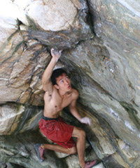 『集中』、像武俠小說,那高手撫弄著琴弦,將內力灌注於琴弦上,與對手比著一場暗潮洶湧的武。當心緒雜亂演奏時,那結果往往是慘不忍睹,連旁人的都聽的出不對勁。路線的大點、凹縫、皺褶、小洞、動作,必須集中心緒,想像、模擬、探索、觸摸,感受著身體的律動、吐?、伸展、平衡、上攀。集中時,身體好像自然舞動,吐?之間可以感受到石頭的溫度、味道,眼神,亦散發出迷人的光彩。 |